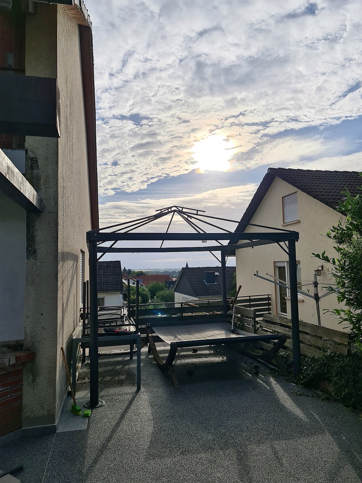 Die Einliegerwohnung entspricht bis auf das Bad noch dem ursprünglichen Zustand. Das Material (Laminatboden) zum Einbau in die Einliegerwohnung ist vorhanden. Diese verfügt über eine Einbauküche.