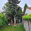 Der Außenbereich teilt sich auf in eine kleine Terrasse auf der Nordseite mit Holzlager und Baumbestand sowie eine überdachte Terrasse und Garten mit Zisterne auf der Südseite. Im Garten befindet sich ein Pavillon, unter dem die bisherigen Besitzer ihren Whirlpool aufgestellt hatten. Auf dieser Seite befindet sich auch die Garage mit Stellplatz davor. Die funktionierende Zisterne im Garten kann zum Bewässern von Rasen und Pflanzen oder als Brauchwasser genutzt werden. Die geräumige Garage hat noch Stauraum unter dem Dach, sie bietet viel Platz für Pkw und Fahrräder und/oder Gartengeräte. Hinter der Garage befindet sich noch ein Gerätehaus.