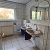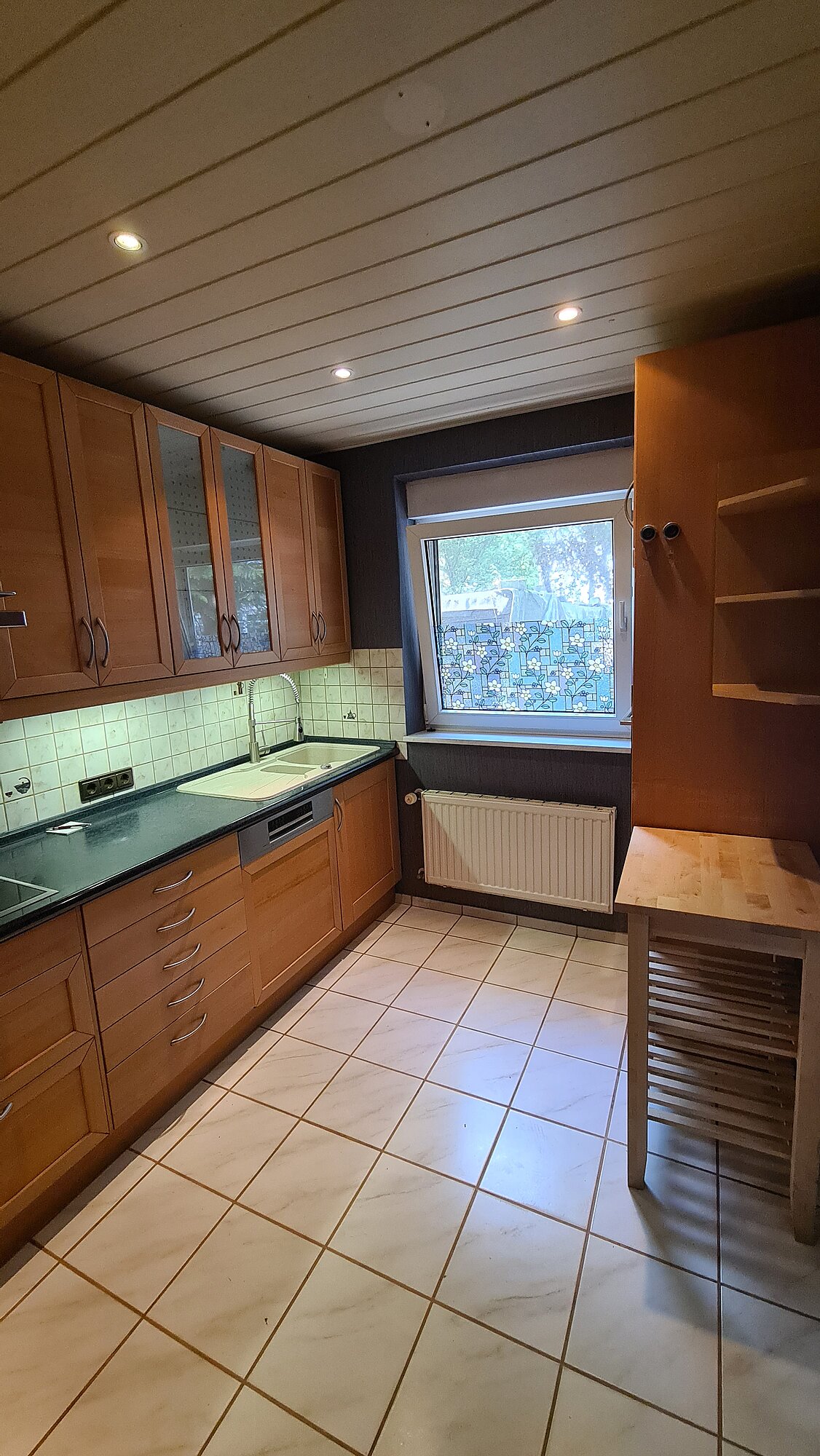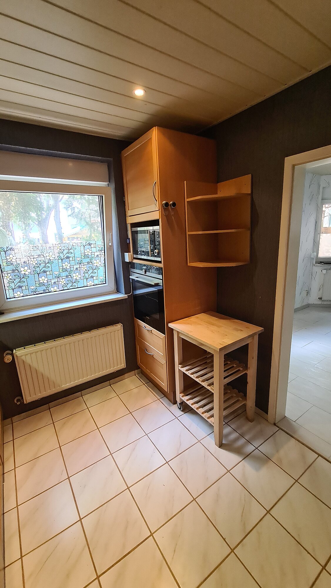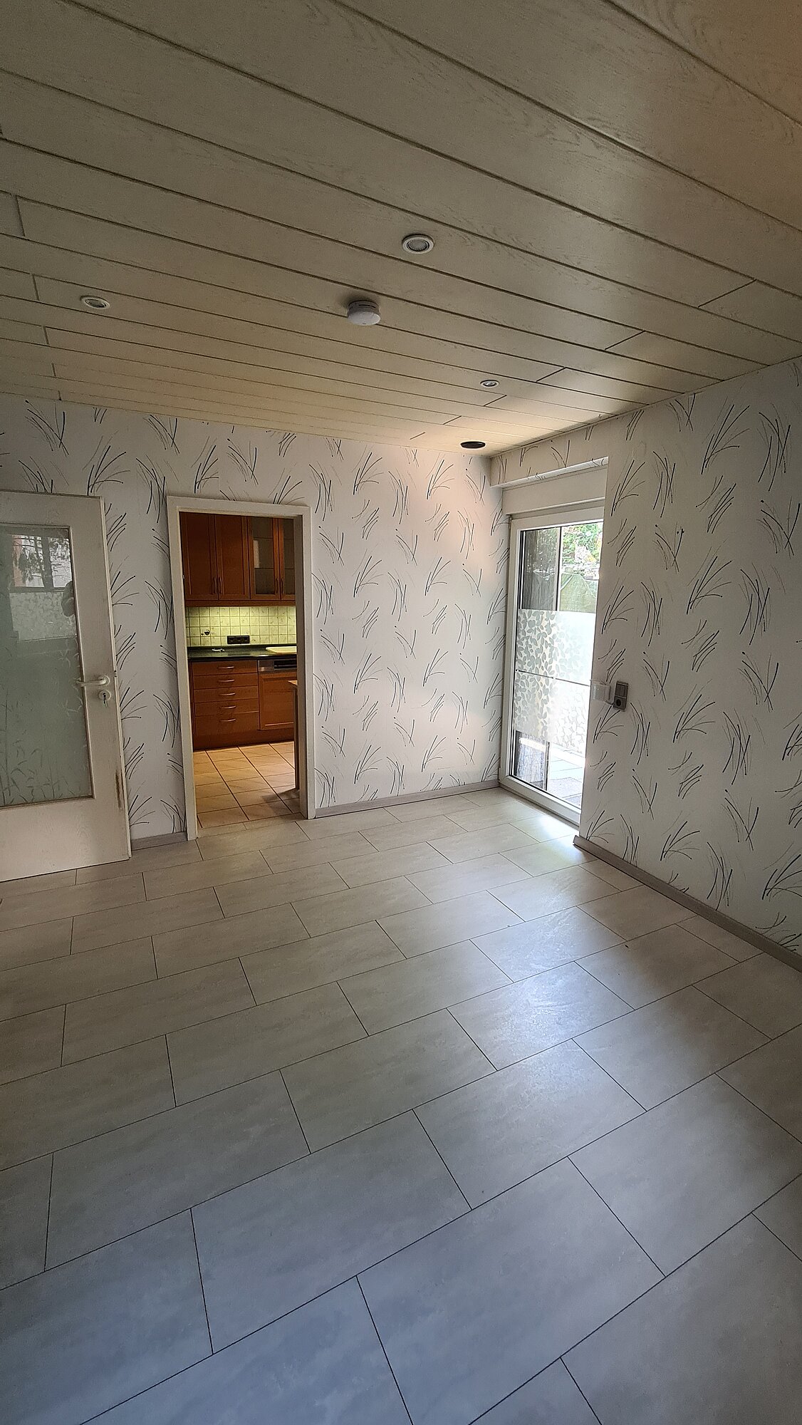 Im Eingangsbereich befindet sich ein Windfang und das Gäste-WC, vom Windfang aus gelangen Sie rechts über den Flur ins Esszimmer sowie die Küche, es ist eine Einbauküche mit Markengeräten vorhanden. Vom Esszimmer geht es auf eine kleine Terrasse und zum „Holzlager“ für den Kaminofen. Links vom Flur befindet sich das Wohnzimmer mit Kaminofen und Zugang zur überdachten Terrasse und Garten. Im Garten befindet sich ein Pavillon, unter dem die bisherigen Besitzer Ihren Whirlpool aufgestellt hatten. Die Küche ist gefliest, das Wohn und Esszimmer wurde 2020 neu mit Laminat ausgestattet.