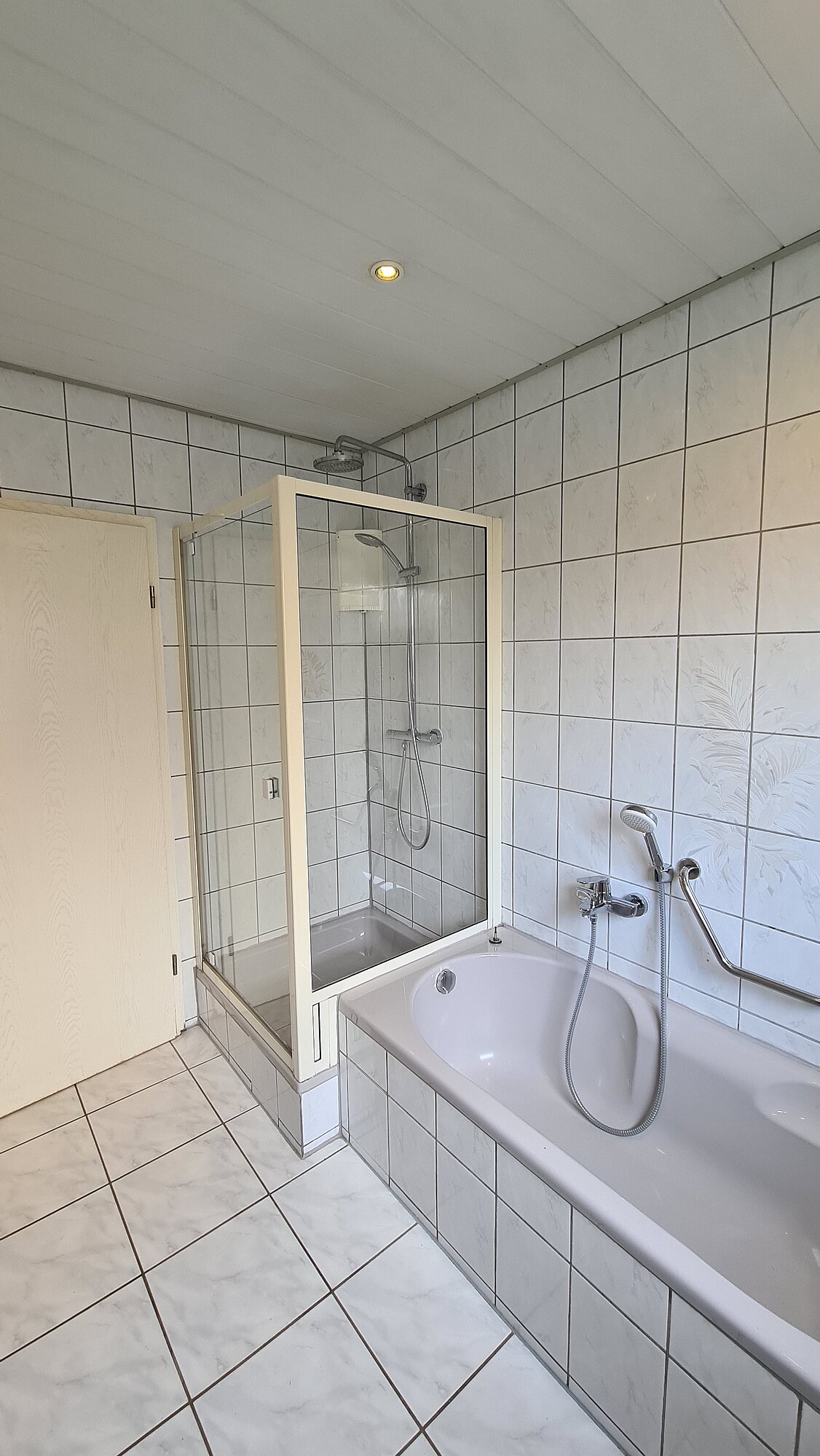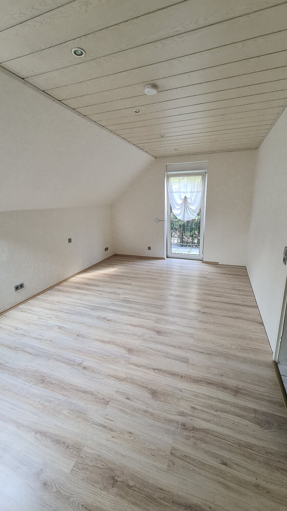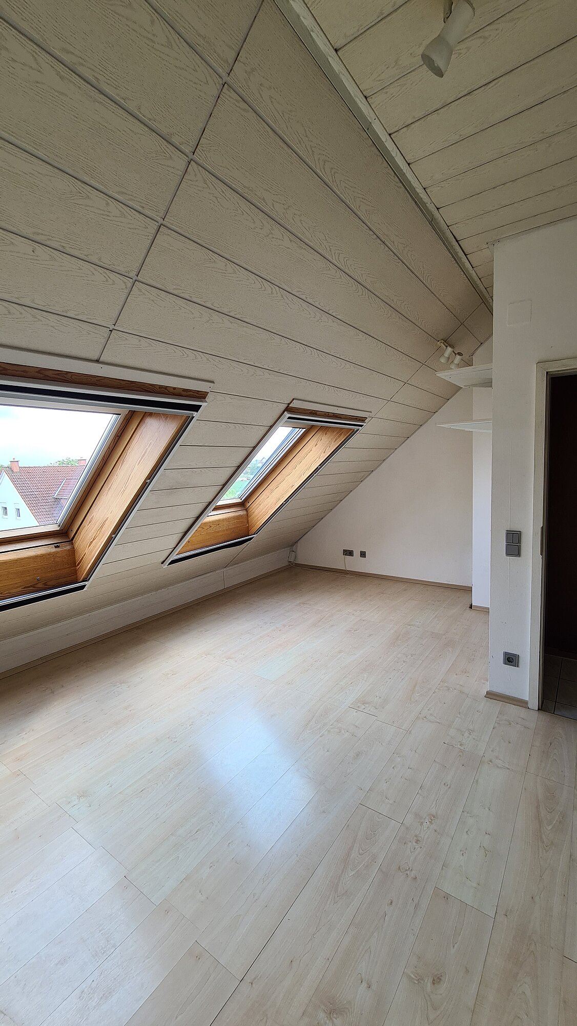 Das Obergeschoss bietet zwei Zimmer sowie ein Tageslicht-Badezimmer mit Dusche, Badewanne, WC und 2 Waschbecken. Ein weiteres Kinderzimmer wäre mittels Trennwand im Schlafzimmer möglich. Das Schlafzimmer verfügt über einen Balkon und einer 2020 installierten Klimaanlage und ein Dachflächenfenster mit Außenrollladen. Im Kinderzimmer befindet sich ein Dachflächenfenster mit Verdunkelungsrollo sowie Zugang zu dem 2. Balkon. Schlaf- und Kinderzimmer sind mit Laminat ausgelegt. Über die Treppe gelangen Sie in die oberen Räumlichkeiten. Das Dachgeschoss besteht aus 1 ½ Zimmern, einem Bad und Küchenanschlüsse sind ebenso vorhanden. Dieses kann gut als eigener Bereich für ältere Kinder oder ein Elternteil genutzt werden. Die Böden sind hier mit Laminat ausgelegt. Die zwei großen und ein kleines Dachflächenfenster durchfluten den Raum mit viel Licht und haben Fliegengitter, Jalousien und Außenrollos. Das Bad ist mit Dusche, WC und Waschbecken ausgestattet. Ein Fenster sorgt für Helligkeit und Frischluft.