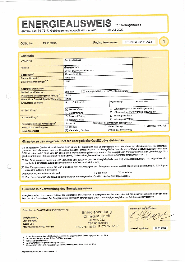 - Baujahr laut Energieausweis: